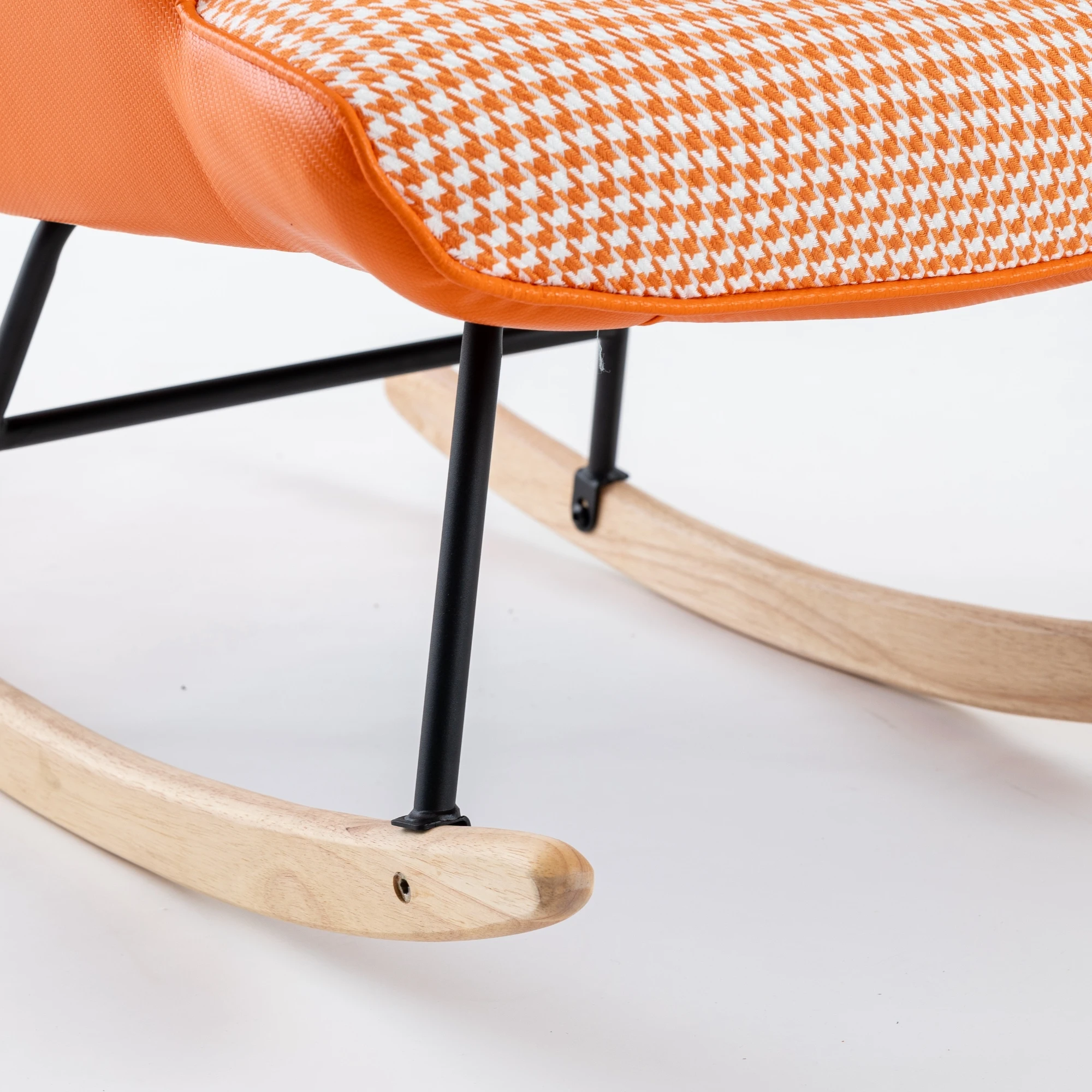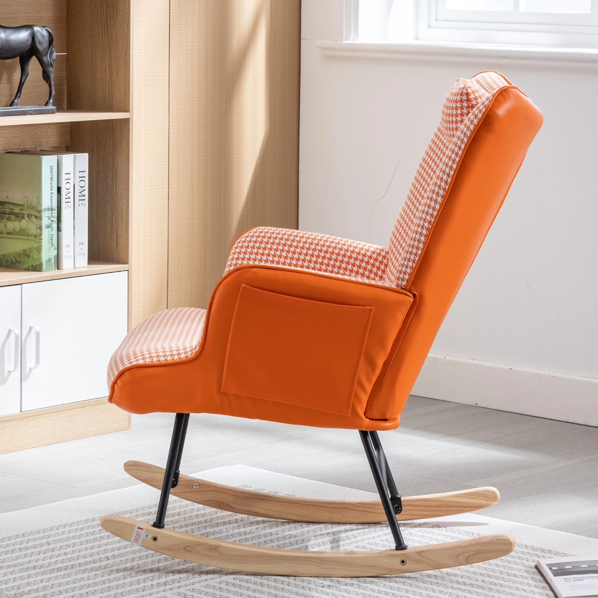 Stylish & Storage: Elevate your space with our modern rocking chair that seamlessly combines fashion style and practical. Its artistic design features sleek wing back and houndstooth pattern fabric, exuding sophistication.