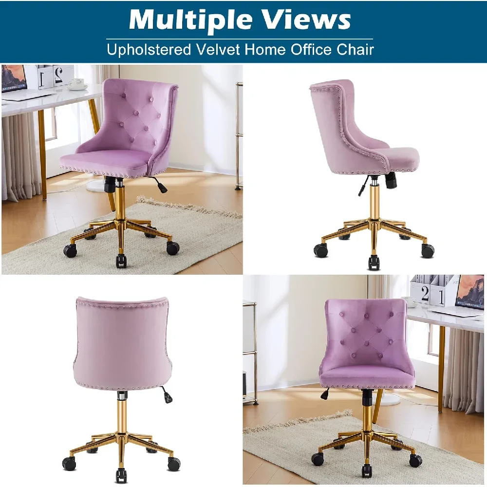 Mauve Purple Armless Home Office Desk Chair with Gold Base/Wheels, Small Cute Vanity/Makeup Chair