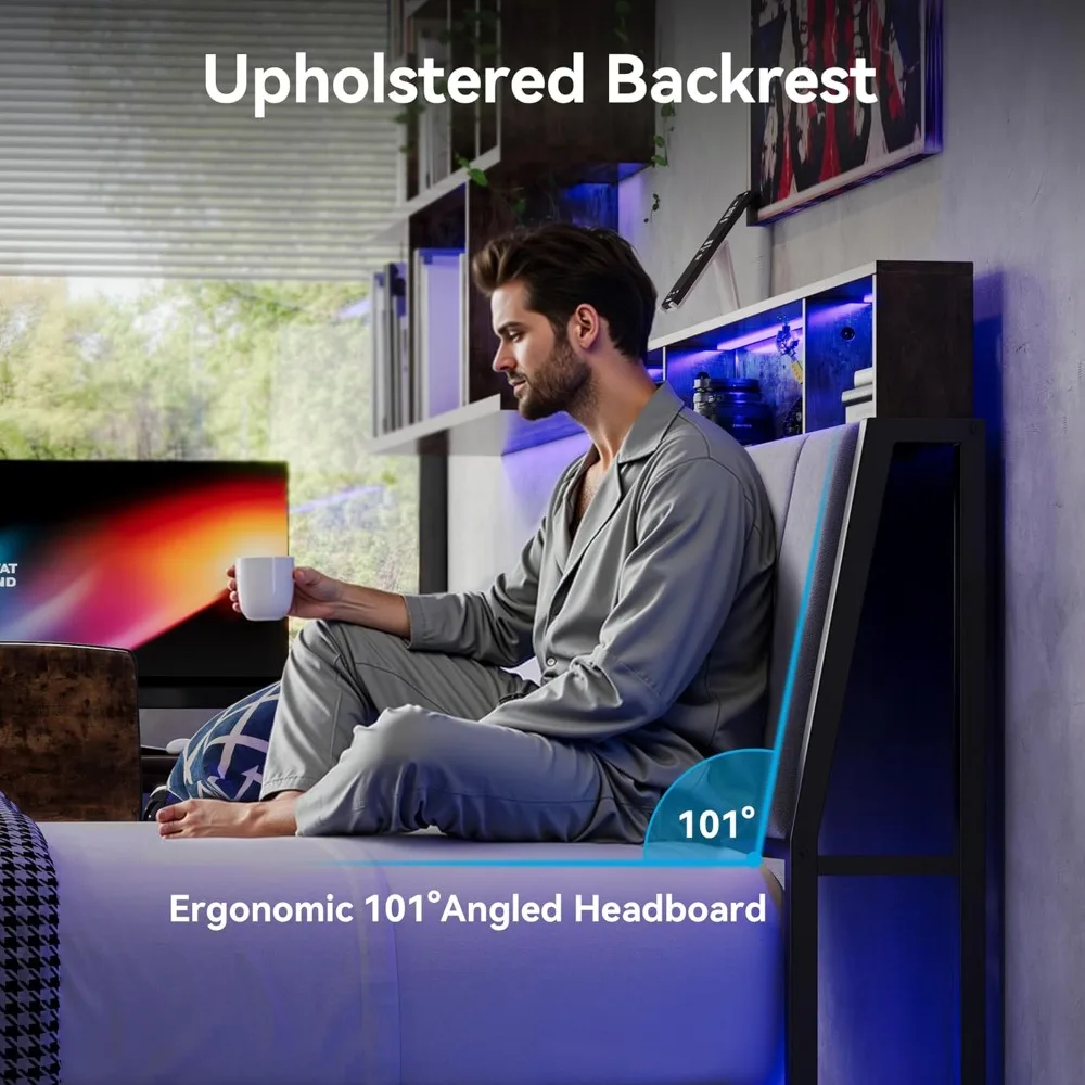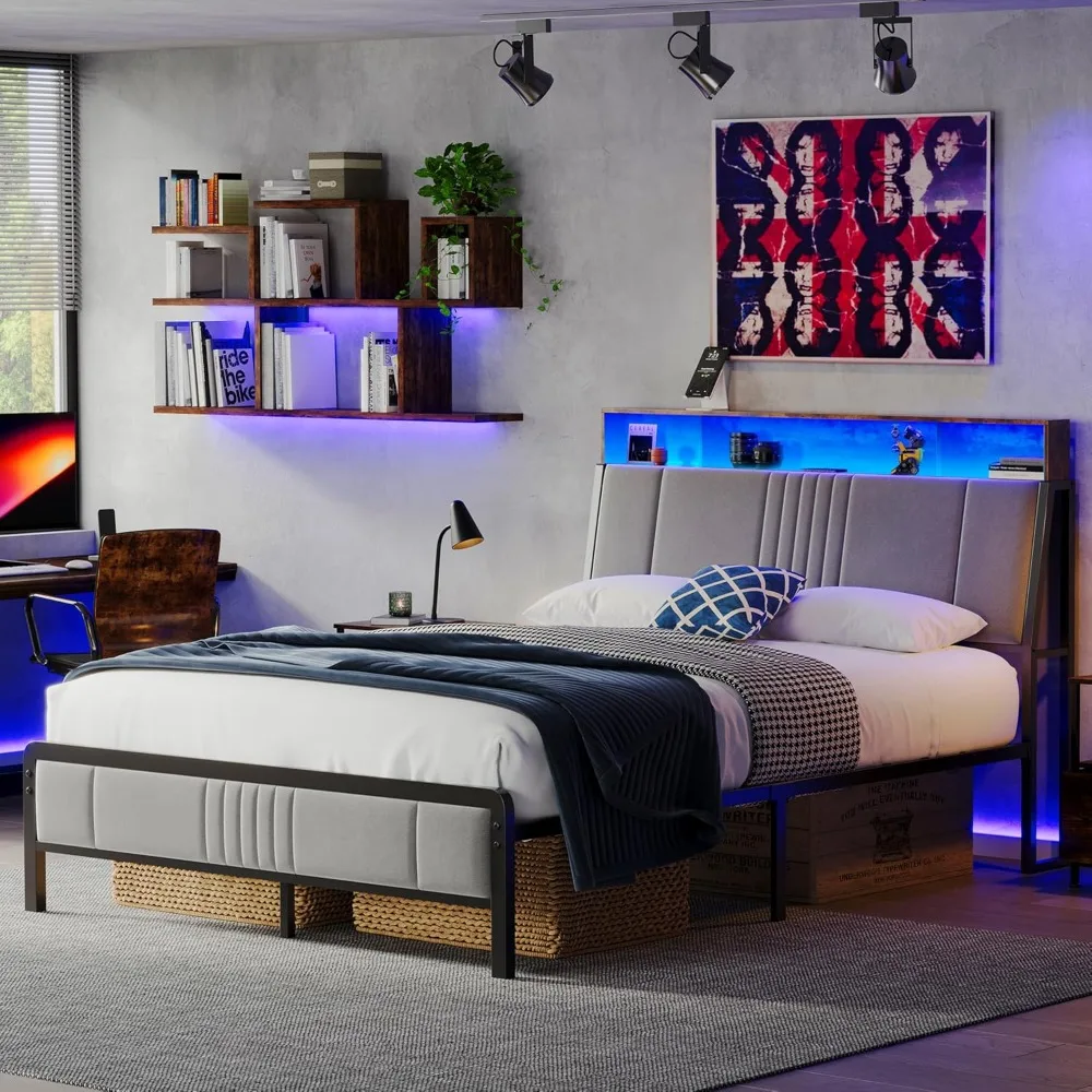 • Safe Device Assistant: This queen-size bed frame with a charging station is perfect for you. The headboard features storage specifically designed to accommodate your devices and small items. It is equipped with 2 USB ports and 2 AC outlets to meet all your charging needs. Dual ETL and FCC certifications for your peace of mind